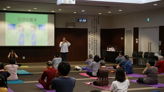 スライドを使った講義「ヨガとは」「ストレスと自律神経」